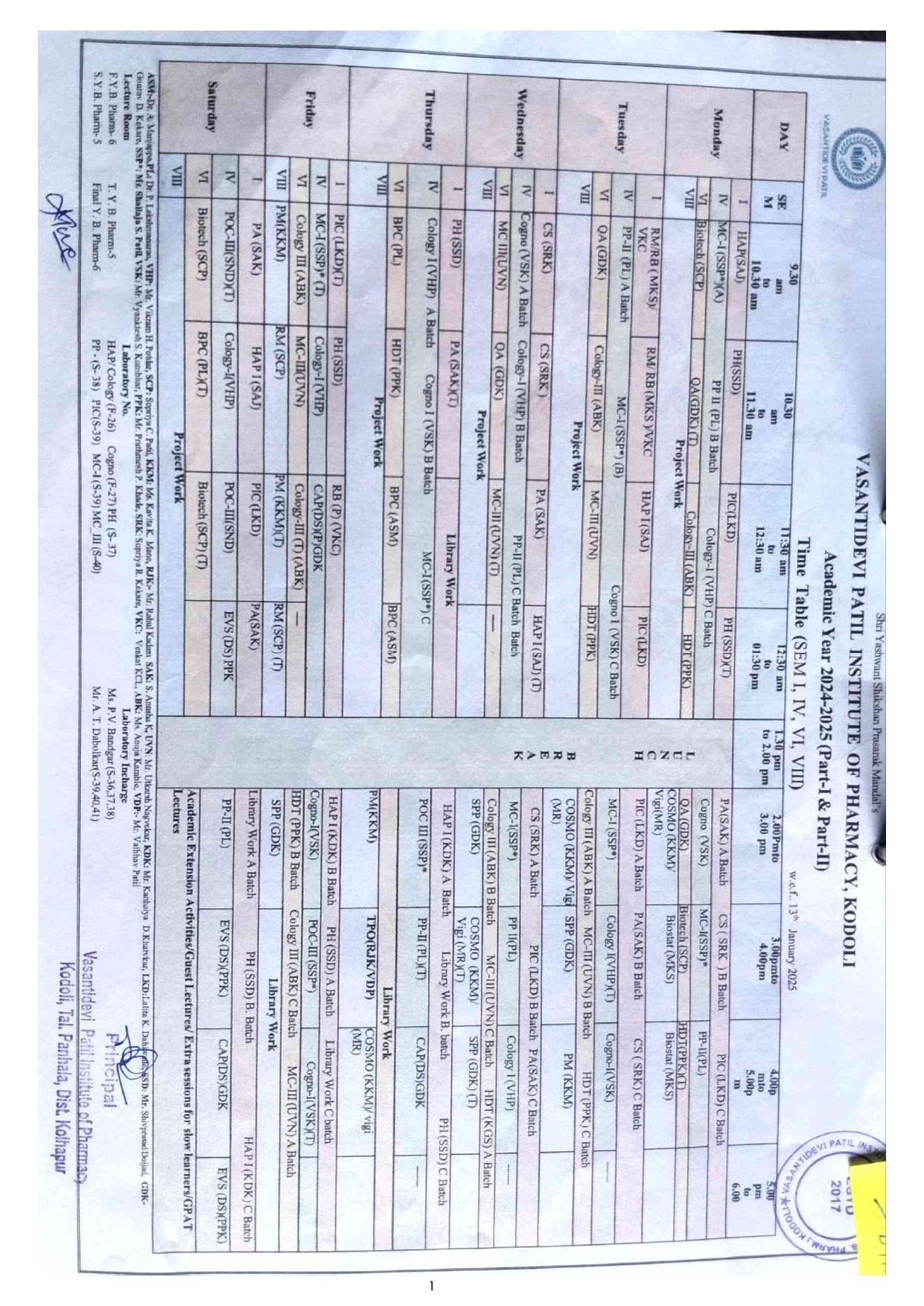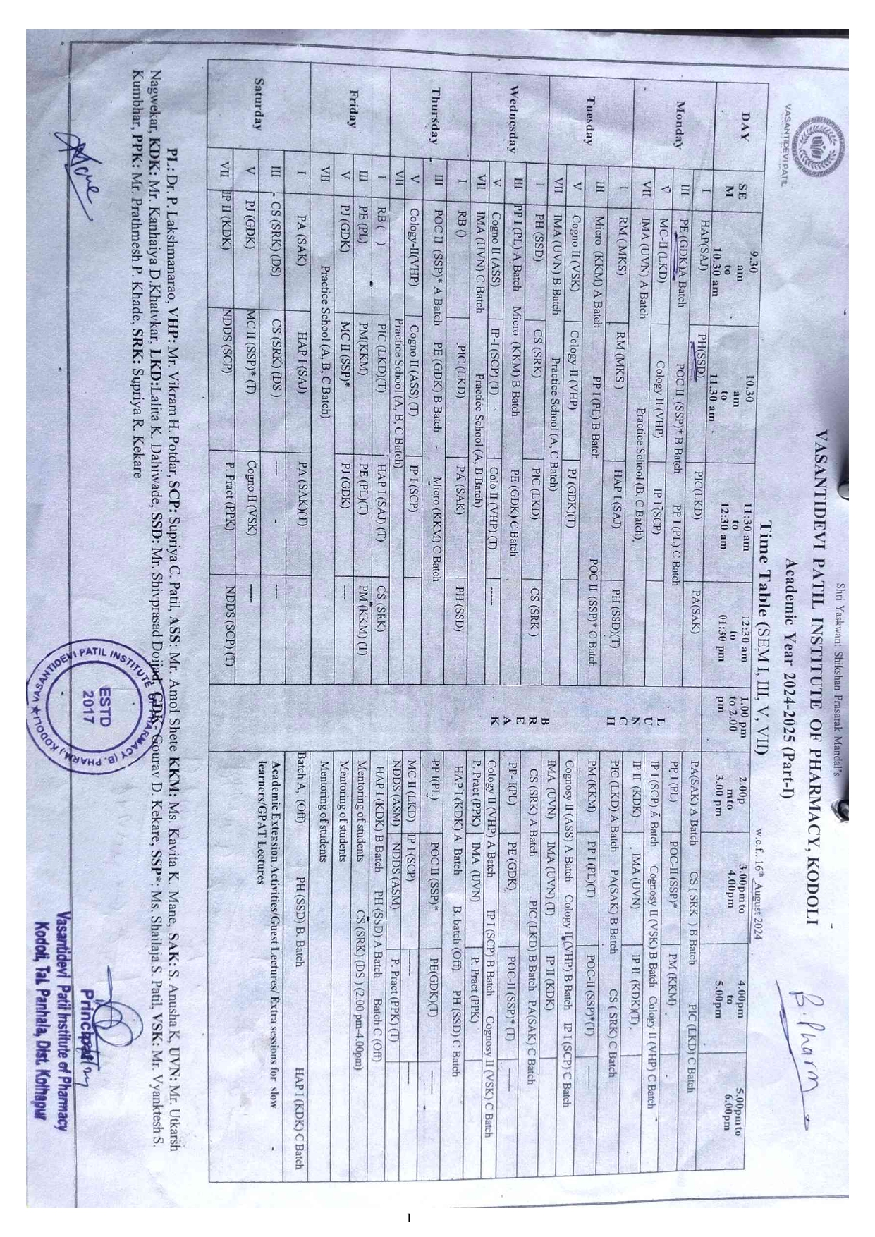 Odd Semester Time Table