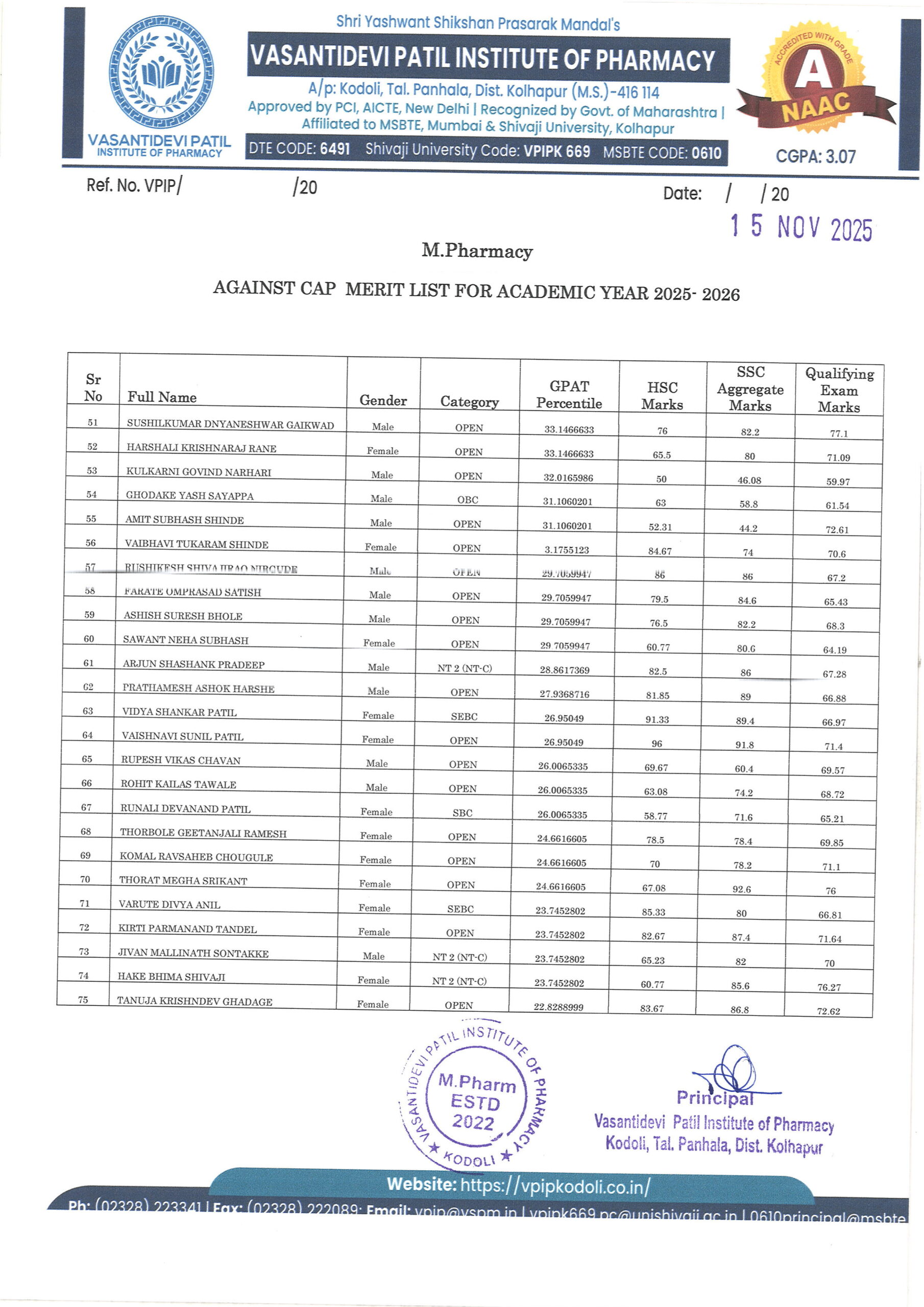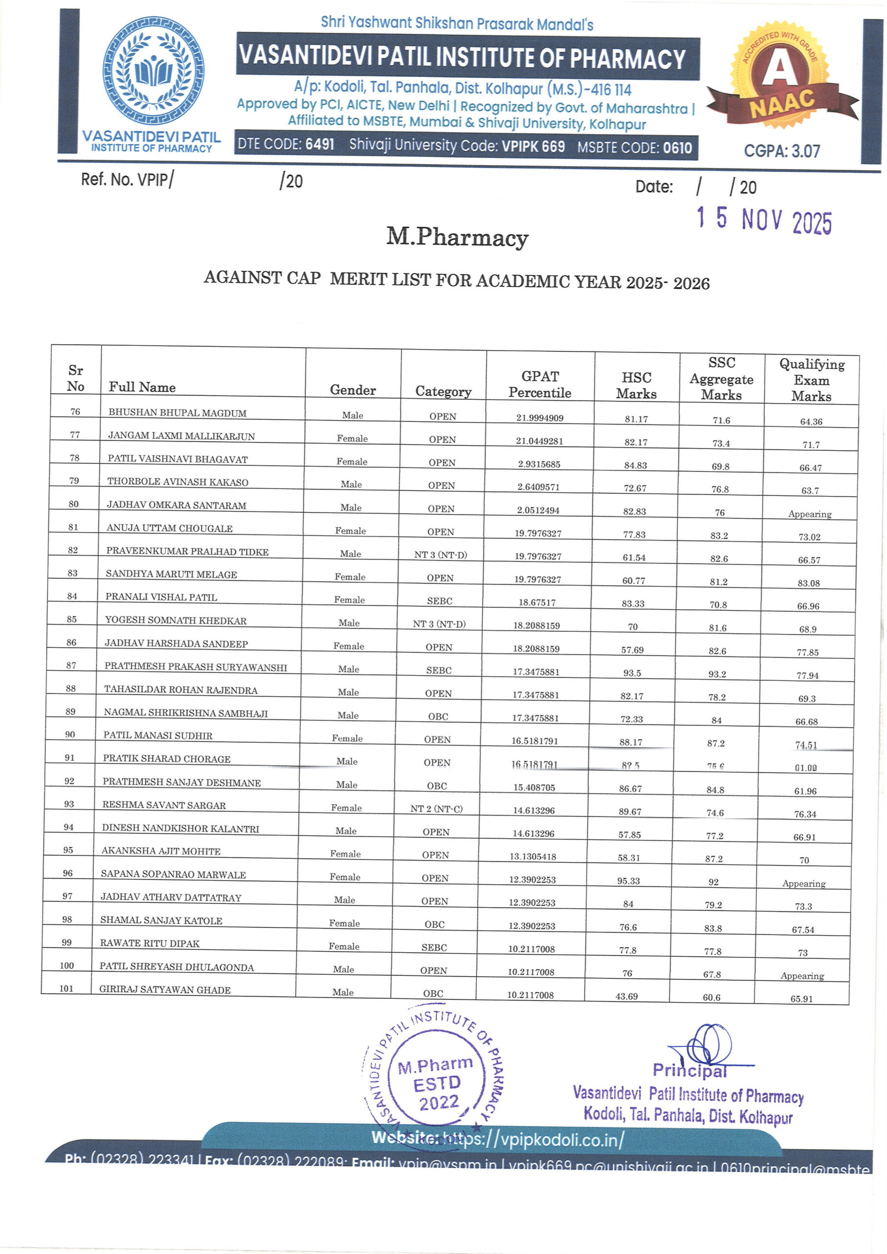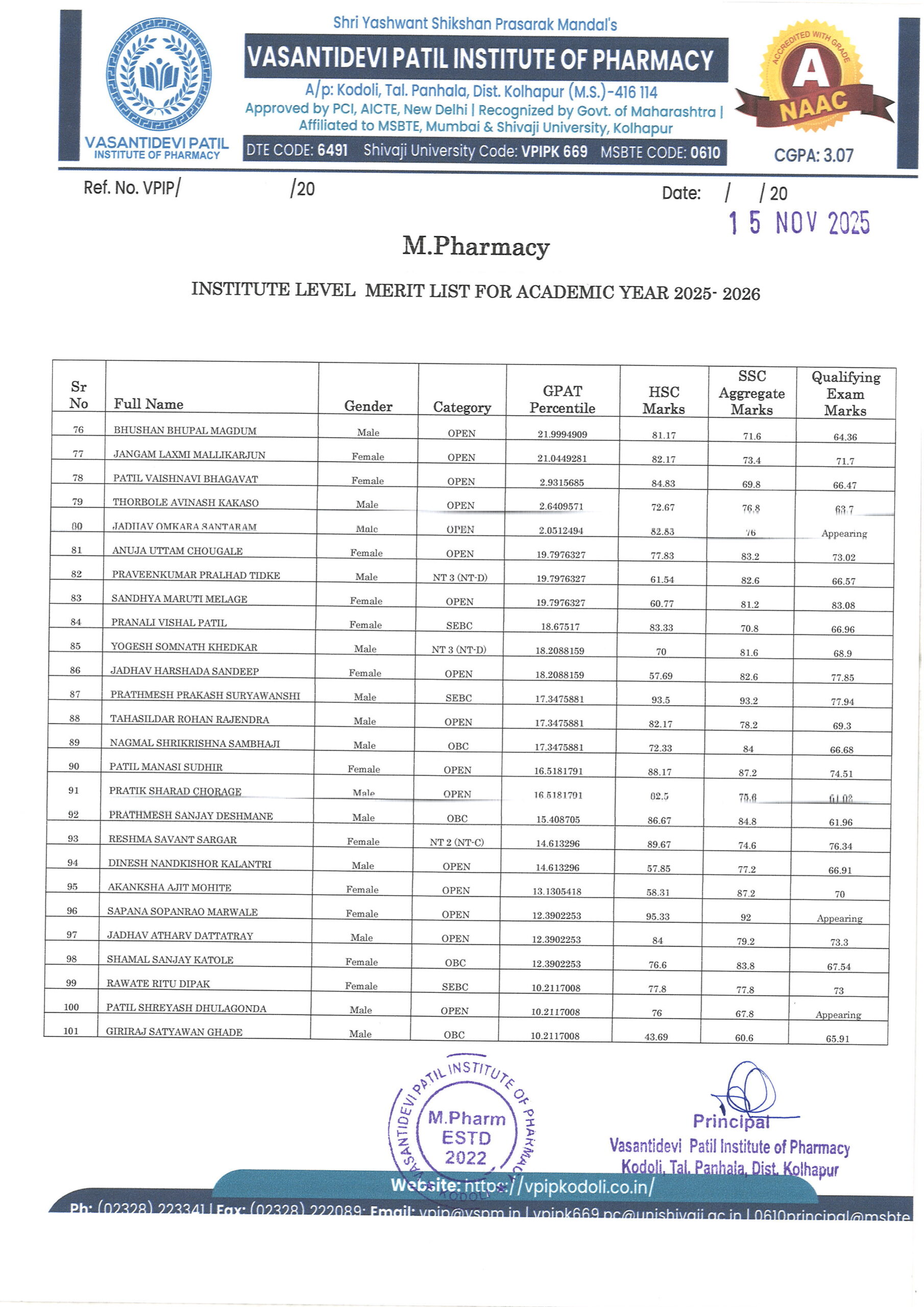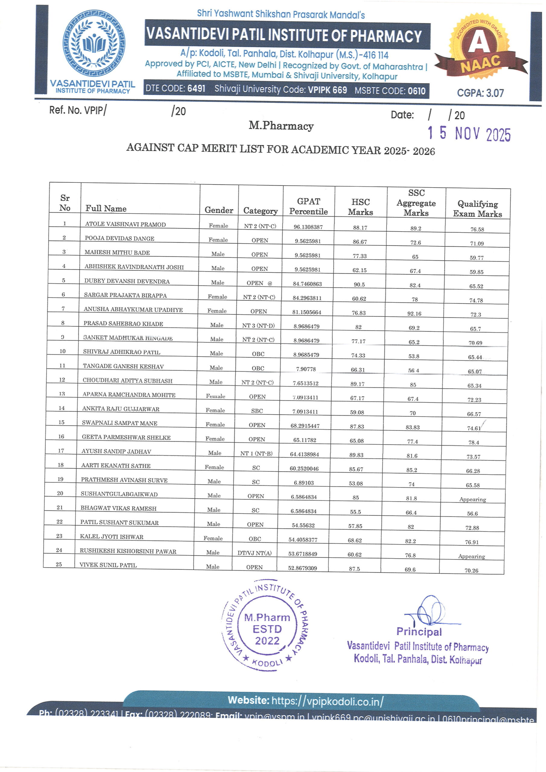 HTML marquee Tag Vasantidevi Patil Institute of Pharmacy, Kodoli, has been accredited with an A Grade, achieving an impressive CGPA of 3.07 by NAAC.