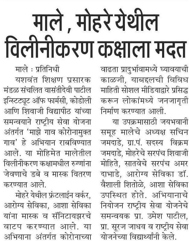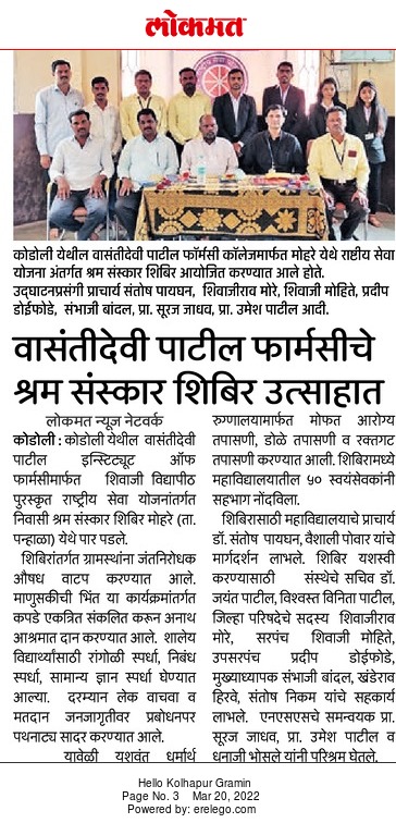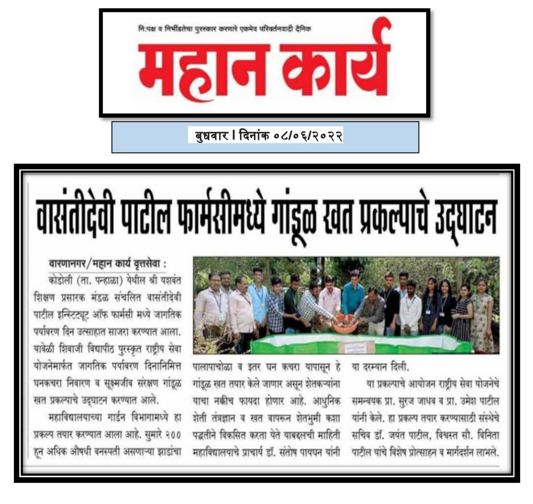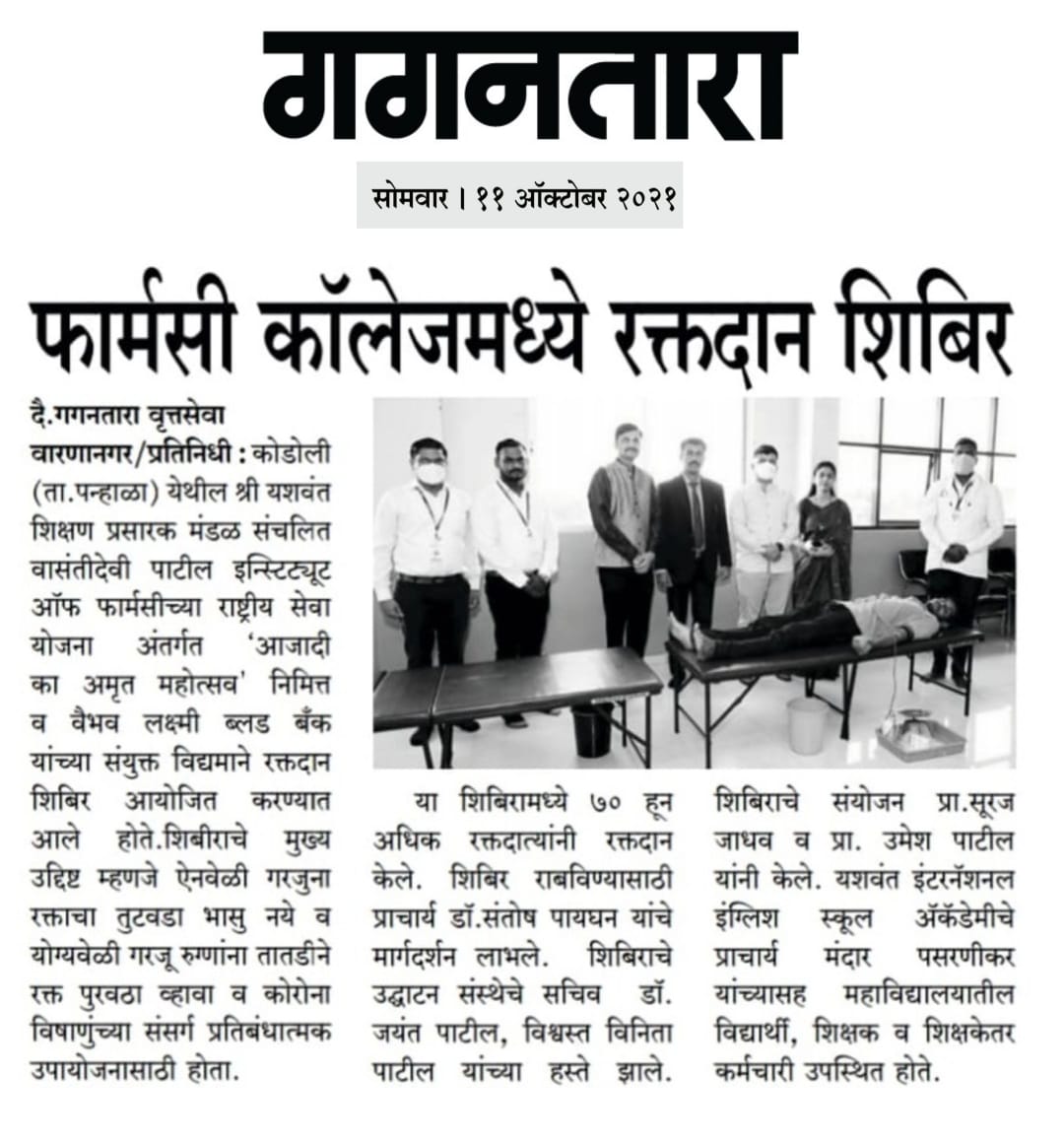 HTML marquee Tag Vasantidevi Patil Institute of Pharmacy, Kodoli was established with the aim to impart quality pharmacy education and training to cater the needs of the pharmacy profession and society at large. The journey started in 2003 by introducing the first Pharmacy institute in the Kodoli under aegis of Shri Yashwant Shikshan Prasarak Mandal, Kodoli. The institute is approved by AICTE New Delhi, PCI New Delhi, and DTE Mumbai, recognized by Government of Maharashtra & affiliated to a MSBTE, Mumbai and Shivaji University, Kolhapur. The Institute is situated at the foot hills of Panhala, in the area of Kodoli, about 10 kilometres away from National Highway- 4 and 35 km away from major city, Kolhapur. The institute occupies the area of approximately 4 acres having its own 5470 sq.mts. building with excellent infrastructure which in-houses facilities such as sophisticated laboratories, resourceful library with latest books, national& international journals and well-equipped classrooms with modern teaching aid. Vasantidevi Patil Institute of Pharmacy is a progressive edifying organization, dedicated to the pursuit of excellence. This institute has been dedicated to decree solutions to big challenges and to prepare the student for leadership in a multifaceted world.