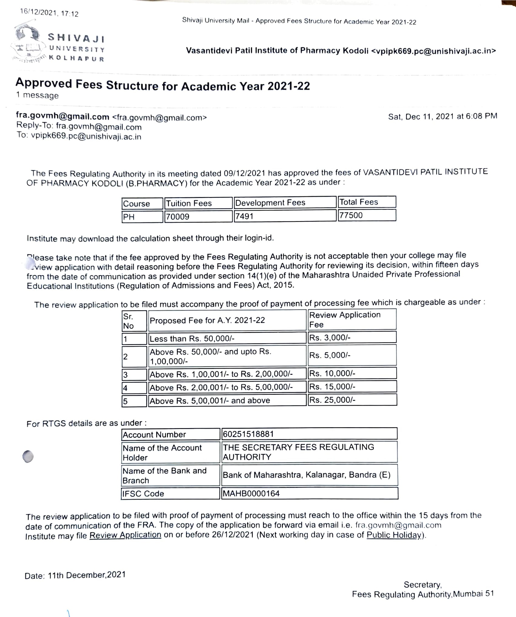 Vasantidevi Patil Institute of Pharmacy, Kodoli was established with the aim to impart quality pharmacy education and training to cater the needs of the pharmacy profession and society at large. The journey started in 2003 by introducing the first Pharmacy institute in the Kodoli under aegis of Shri Yashwant Shikshan Prasarak Mandal, Kodoli. The institute is approved by AICTE New Delhi, PCI New Delhi, and DTE Mumbai, recognized by Government of Maharashtra & affiliated to a MSBTE, Mumbai and Shivaji University, Kolhapur. The Institute is situated at the foot hills of Panhala, in the area of Kodoli, about 10 kilometres away from National Highway- 4 and 35 km away from major city, Kolhapur. The institute occupies the area of approximately 4 acres having its own 5470 sq.mts. building with excellent infrastructure which in-houses facilities such as sophisticated laboratories, resourceful library with latest books, national& international journals and well-equipped classrooms with modern teaching aid. Vasantidevi Patil Institute of Pharmacy is a progressive edifying organization, dedicated to the pursuit of excellence. This institute has been dedicated to decree solutions to big challenges and to prepare the student for leadership in a multifaceted world.
