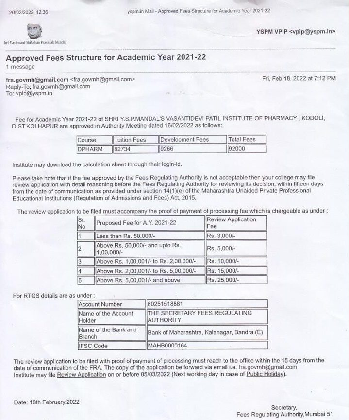 Vasantidevi Patil Institute of Pharmacy, Kodoli was established with the aim to impart quality pharmacy education and training to cater the needs of the pharmacy profession and society at large. The journey started in 2003 by introducing the first Pharmacy institute in the Kodoli under aegis of Shri Yashwant Shikshan Prasarak Mandal, Kodoli. The institute is approved by AICTE New Delhi, PCI New Delhi, and DTE Mumbai, recognized by Government of Maharashtra & affiliated to a MSBTE, Mumbai and Shivaji University, Kolhapur. The Institute is situated at the foot hills of Panhala, in the area of Kodoli, about 10 kilometres away from National Highway- 4 and 35 km away from major city, Kolhapur. The institute occupies the area of approximately 4 acres having its own 5470 sq.mts. building with excellent infrastructure which in-houses facilities such as sophisticated laboratories, resourceful library with latest books, national& international journals and well-equipped classrooms with modern teaching aid. Vasantidevi Patil Institute of Pharmacy is a progressive edifying organization, dedicated to the pursuit of excellence. This institute has been dedicated to decree solutions to big challenges and to prepare the student for leadership in a multifaceted world.